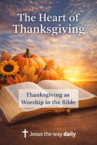 In the New Testament, thanksgiving becomes even more central to the believerโs life. Through Jesus Christ, we are given the greatest gift of allโsalvation (Romans 6:23). Because of the cross, thanksgiving is no longer tied only to material blessings but to eternal hope. Believers are instructed to pray with thanksgiving (Philippians 4:6), to rejoice with thanksgiving (Colossians 3:15), and to live with hearts overflowing with gratitude to God (Ephesians 5:20).