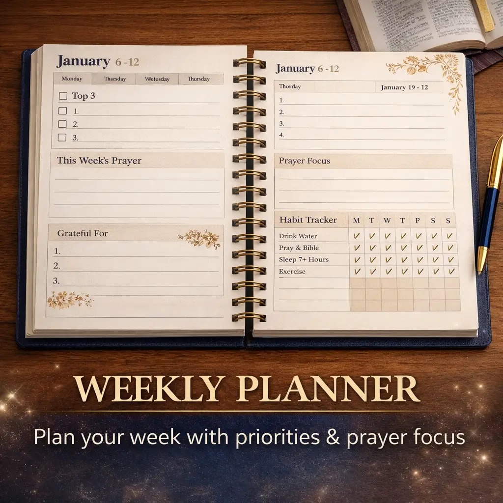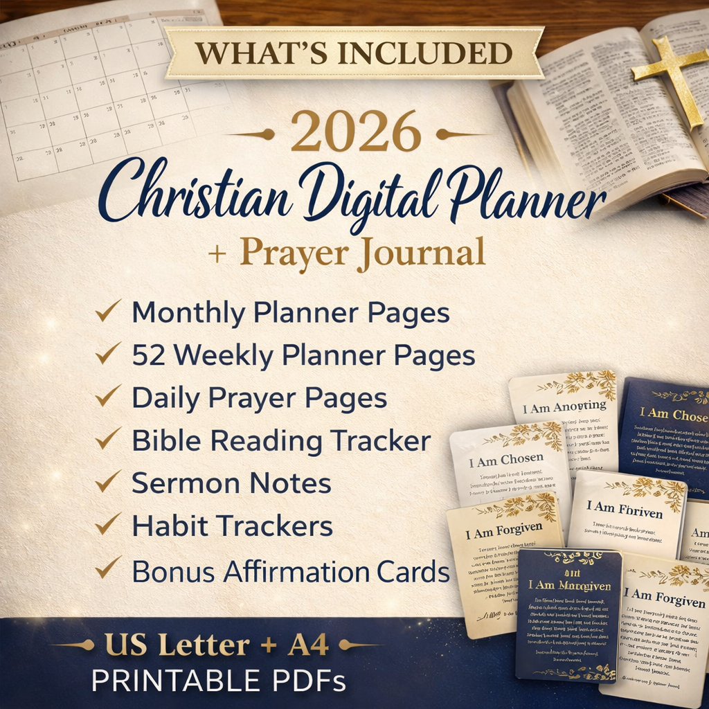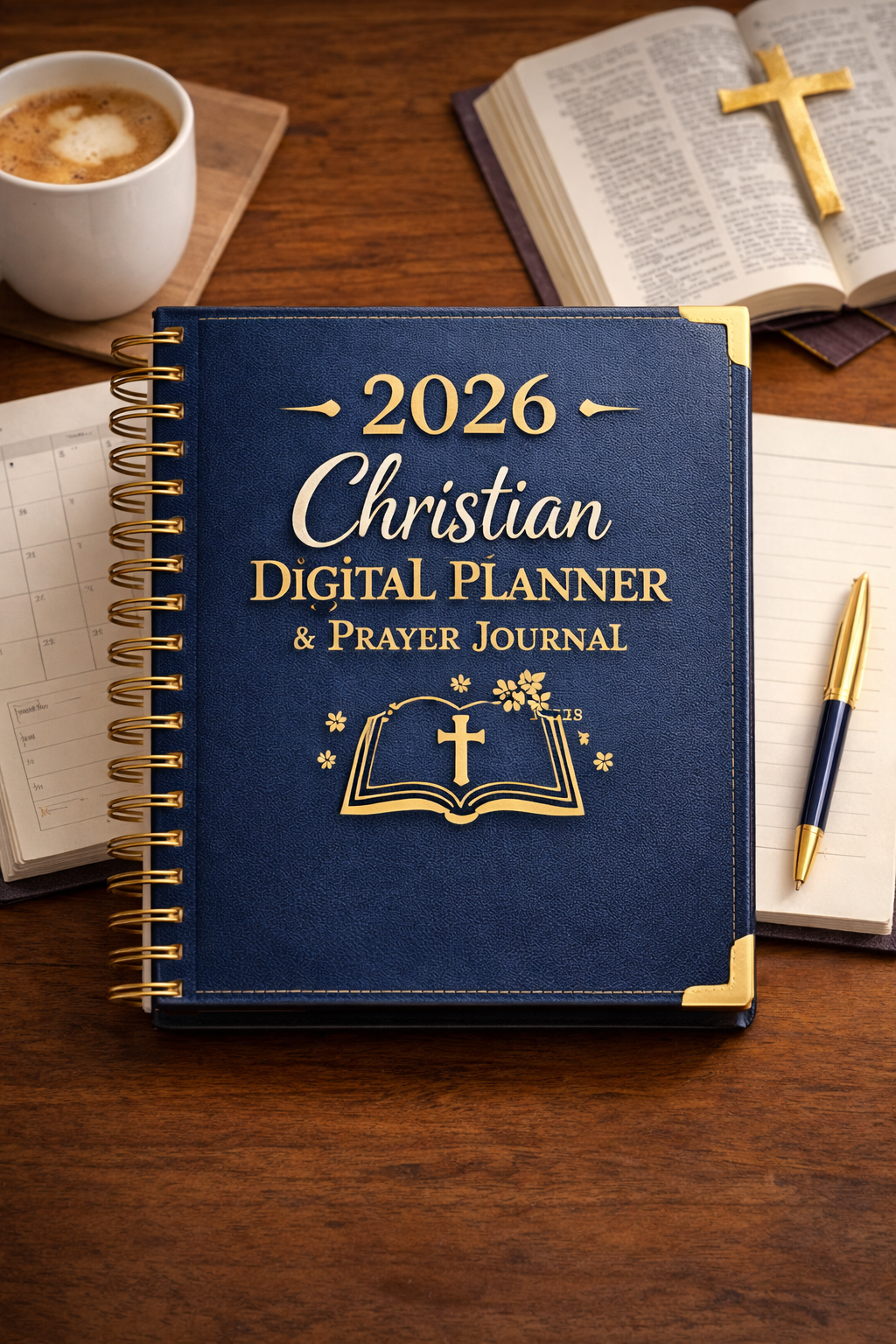 The 2026 Christian Digital Planner + Prayer Journal (Deluxe Printable Bundle) is a premium printable planner created for believers who want structure for their days and strength for their spirit. Whether you’re resetting your routine, building prayer consistency, or planning goals with faith, this planner gives you an elegant system to stay organized and spiritually grounded in 2026.