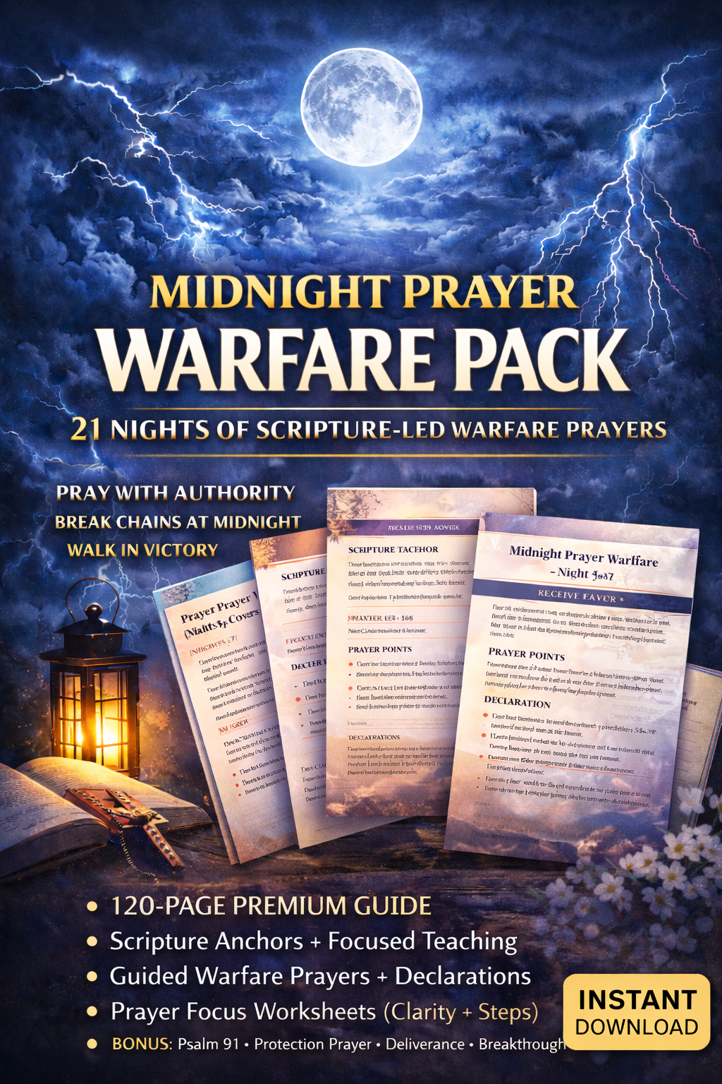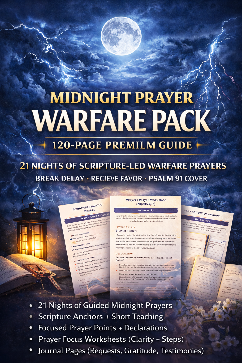 Pray with authority in the midnight hour and build consistency with a premium, structured prayer guide. The Midnight Prayer Warfare Pack (21 Nights) – Premium Edition is designed to help you break delay, cancel night attacks, receive favor, and walk in victory through Jesus Christ.