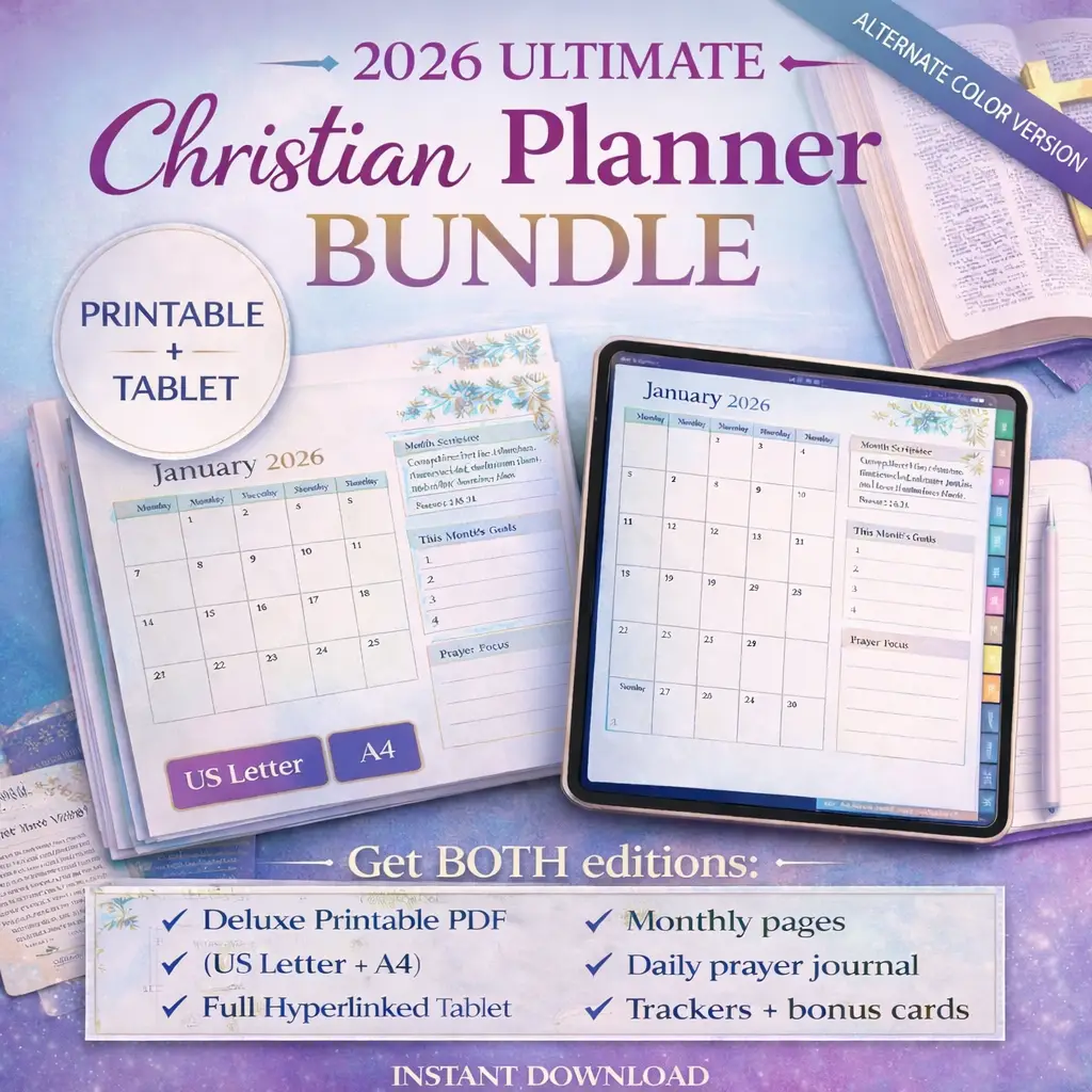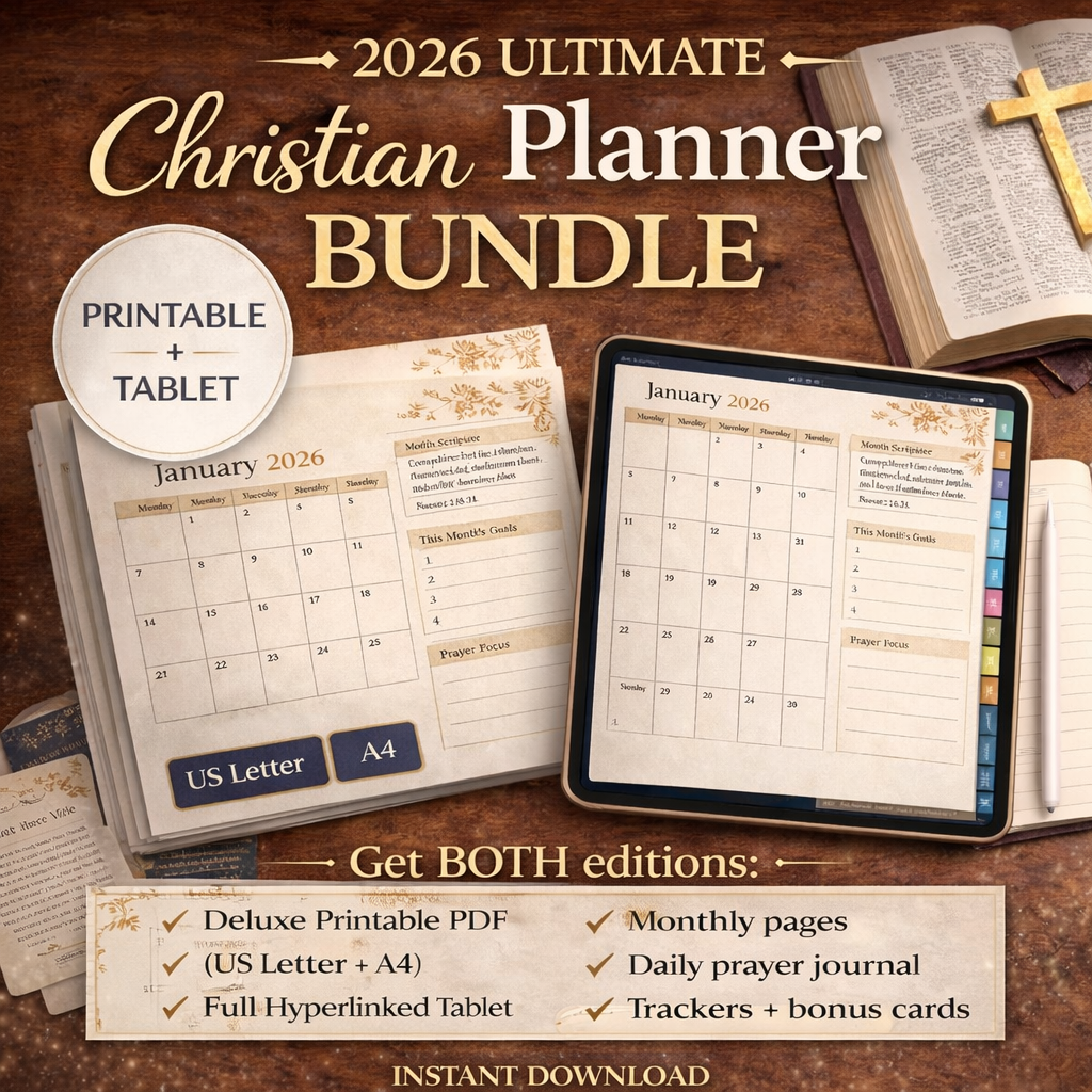 Want to plan on your tablet AND print anytime? The 2026 Christian Digital Planner + Prayer Journal (Ultimate Bundle) gives you everything in one premium package.